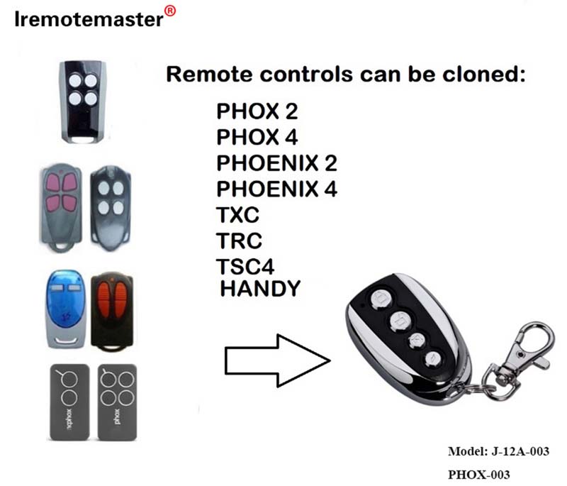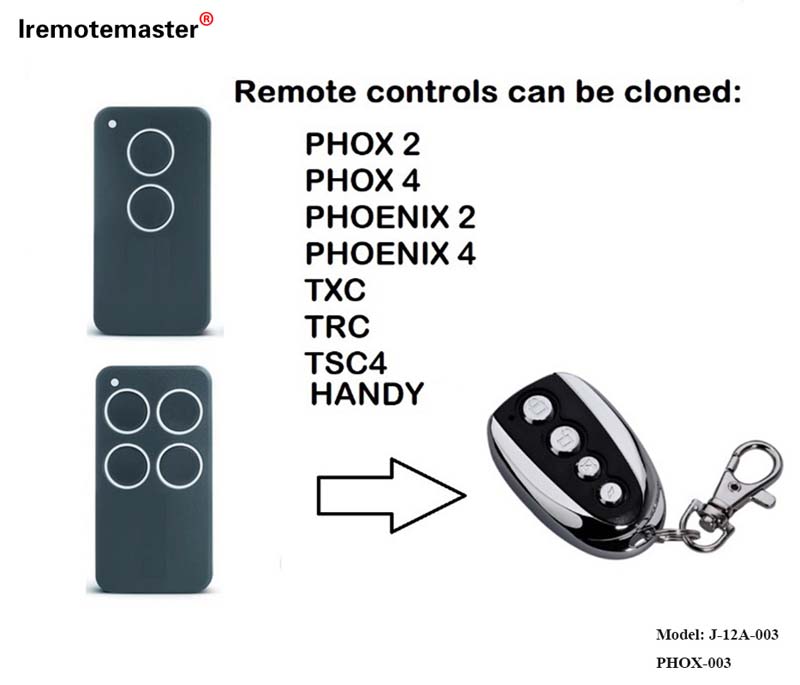 Airson PHOENIX 2 4 TSC2 TSC4 HANDY2 ath-shuidheachadh doras garaids smachd iomallach 433.92mhz Fosgladair Doras Garaids Co-chòrdail ri smachd iomallach doras garaids TRC2, TRC4, TXC2, TXC4, HANDY2, HANDY4